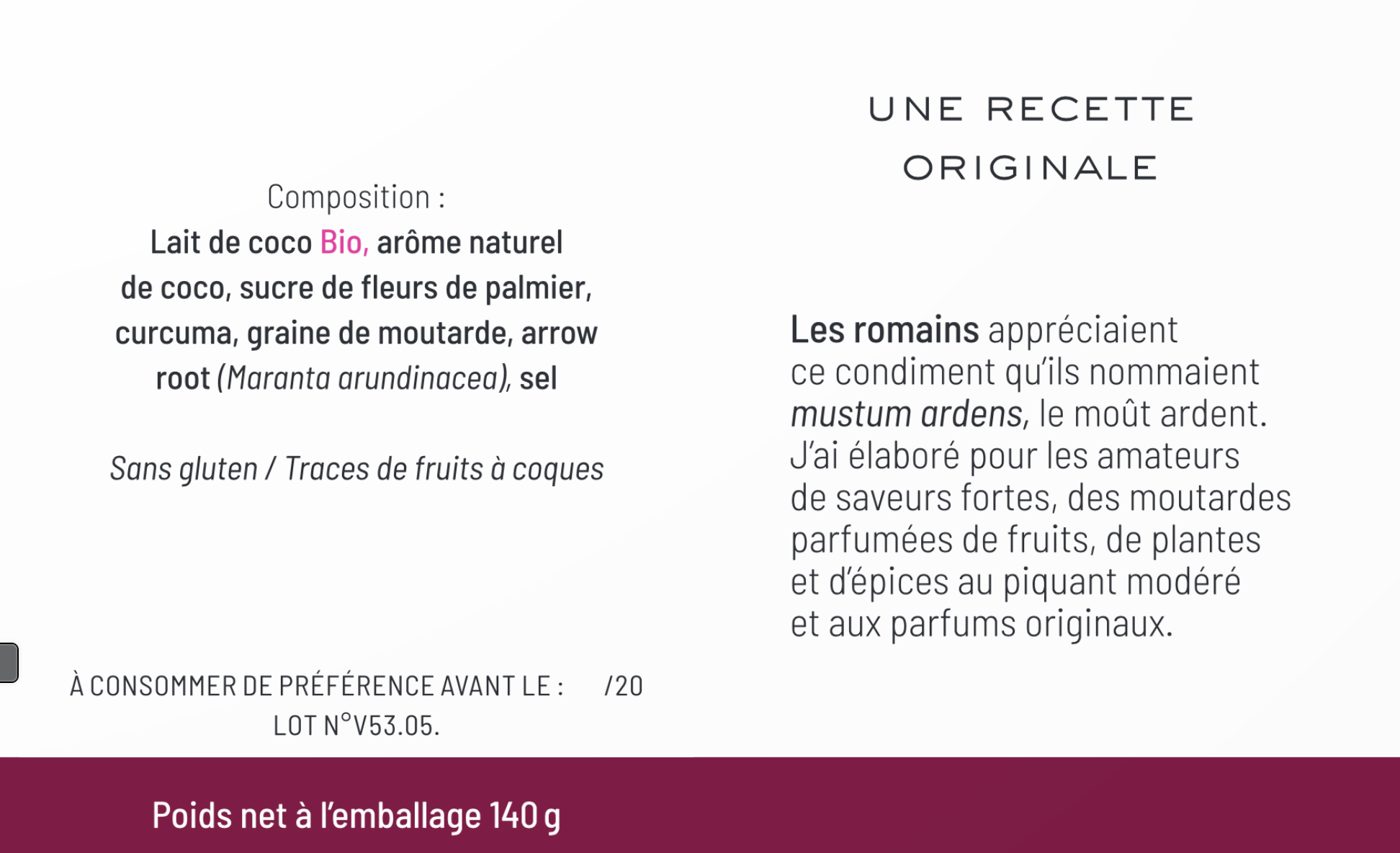 • Artisan quality with a unique coconut twist inspired by tropical cuisines.